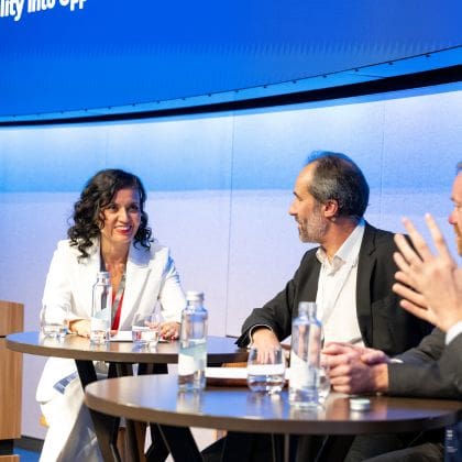 Jade Cano moderiert Podiumsdiskussionen, Konferenzen und Interviews zu Themen aus Wirtschaft, Finanzmärkten und Gesellschaft.